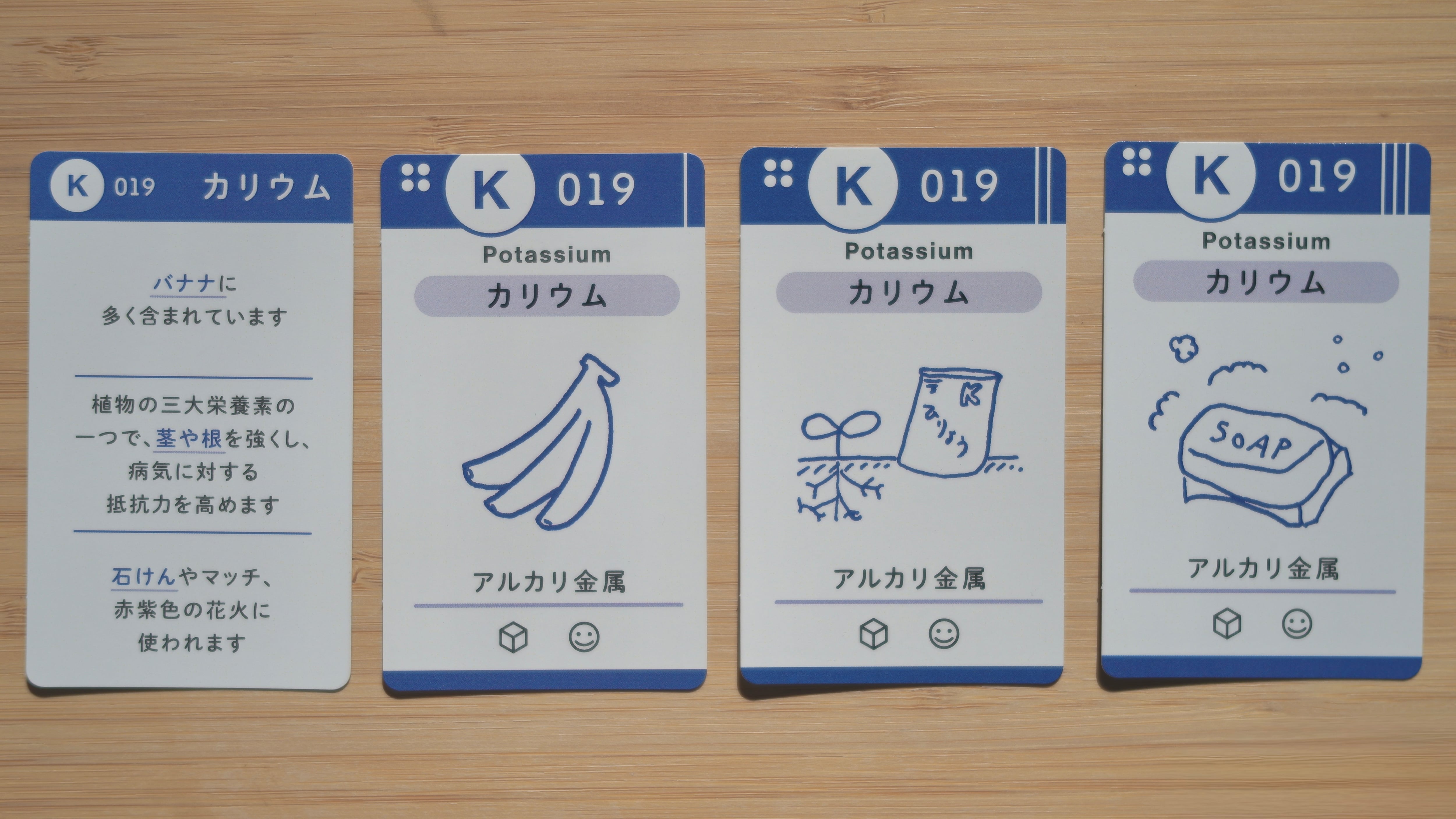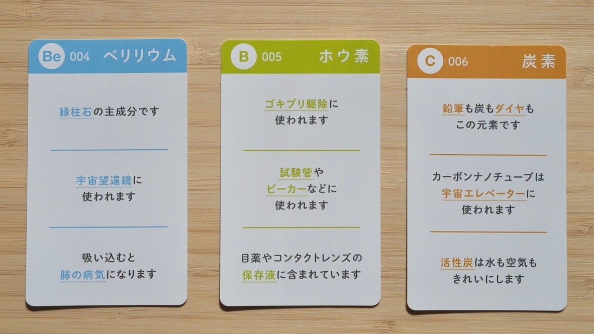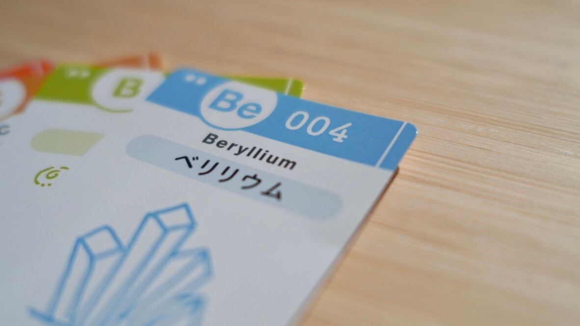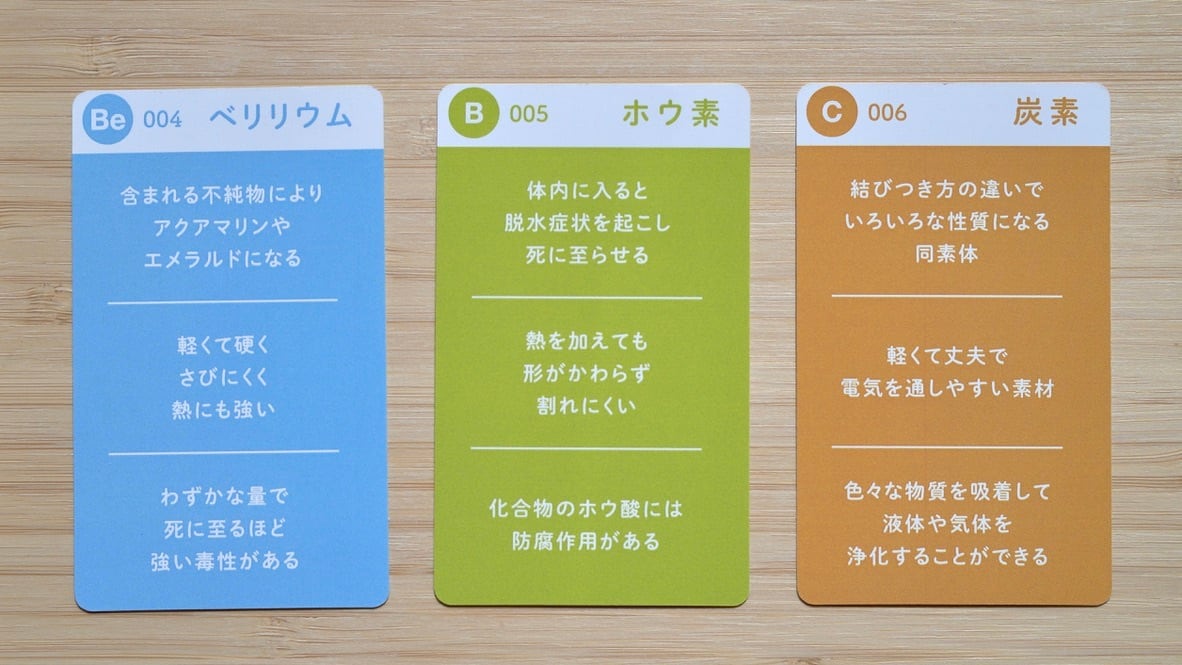 水素からラジウムまでの元素の身近な用途と解説を読み札とし、絵札はシンプル&エレガントなデザイン!