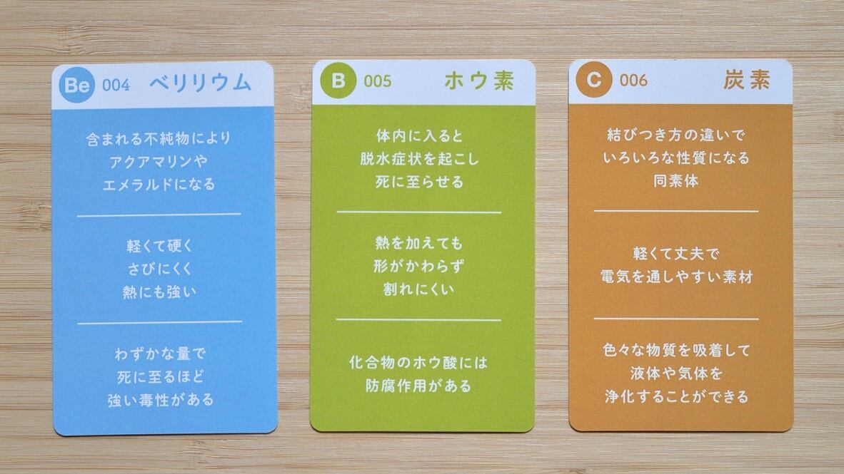 元素カルタ1セット全300枚中、3枚足りませんが、ゲーム性には影響なし!